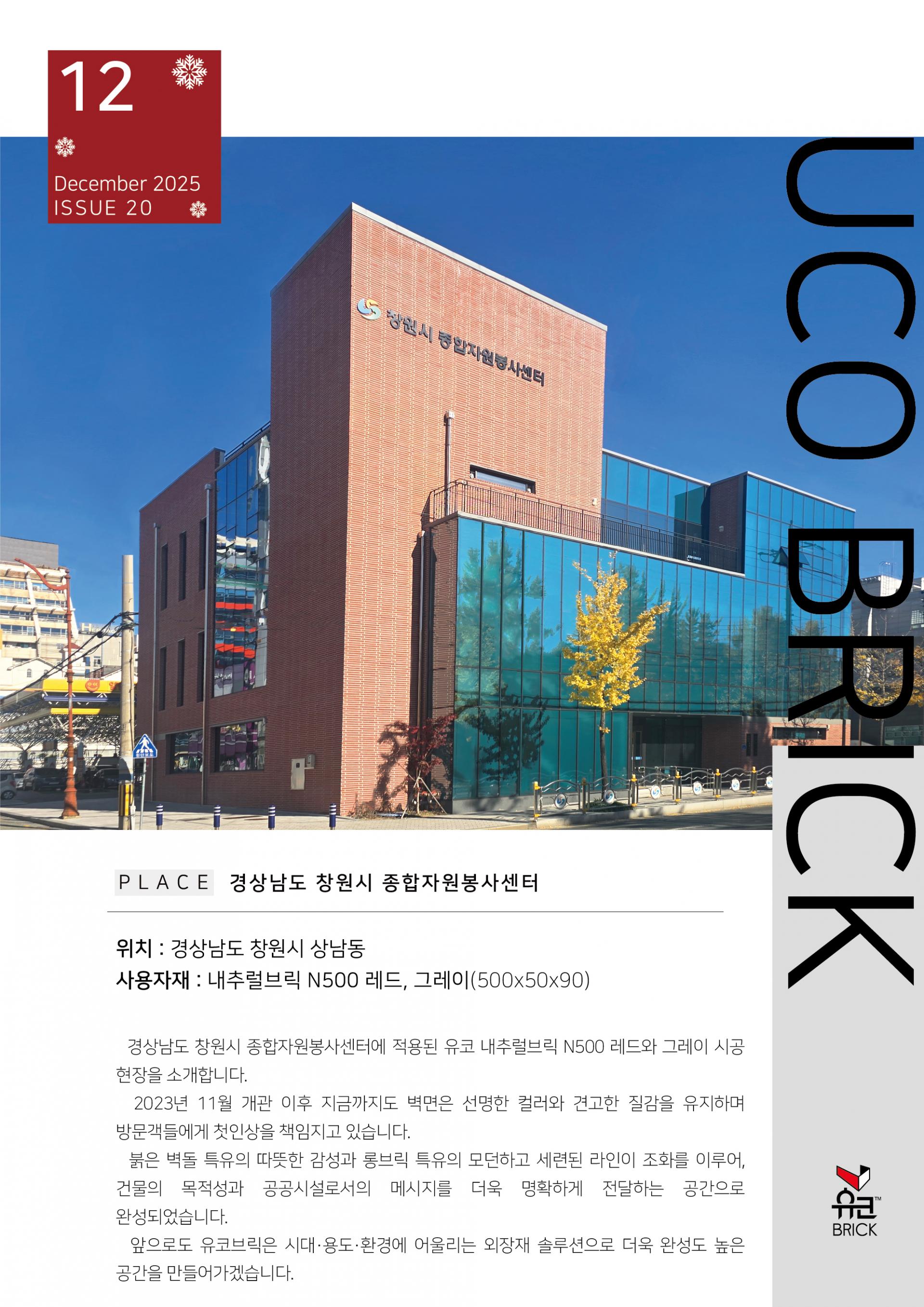 경상남도 창원시 종합자원봉사센터에 적용된 유코 내추럴브릭 N500 레드와 그레이 시공 현장을 소개합니다.