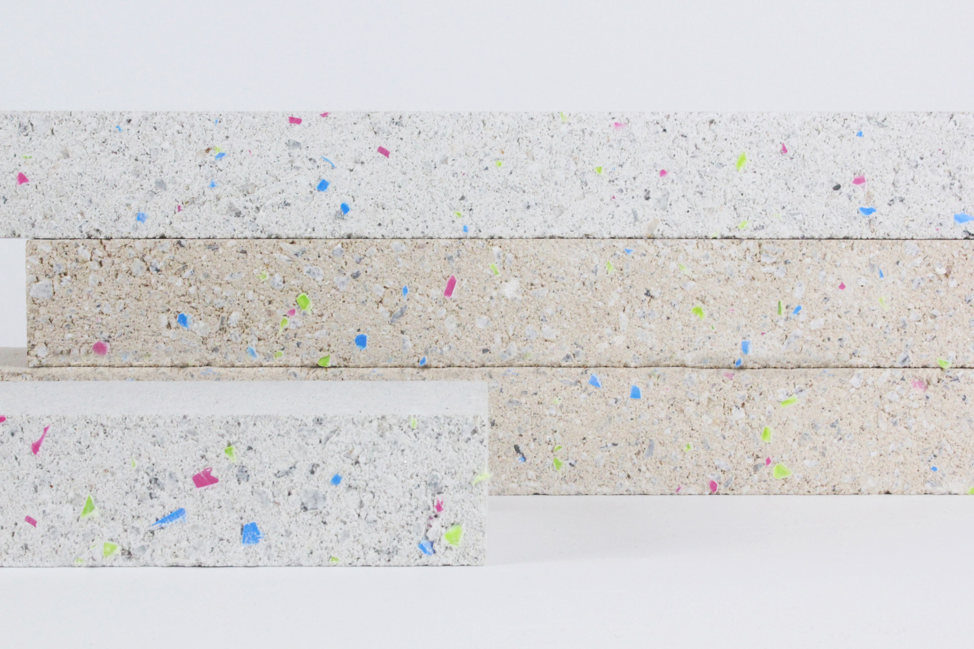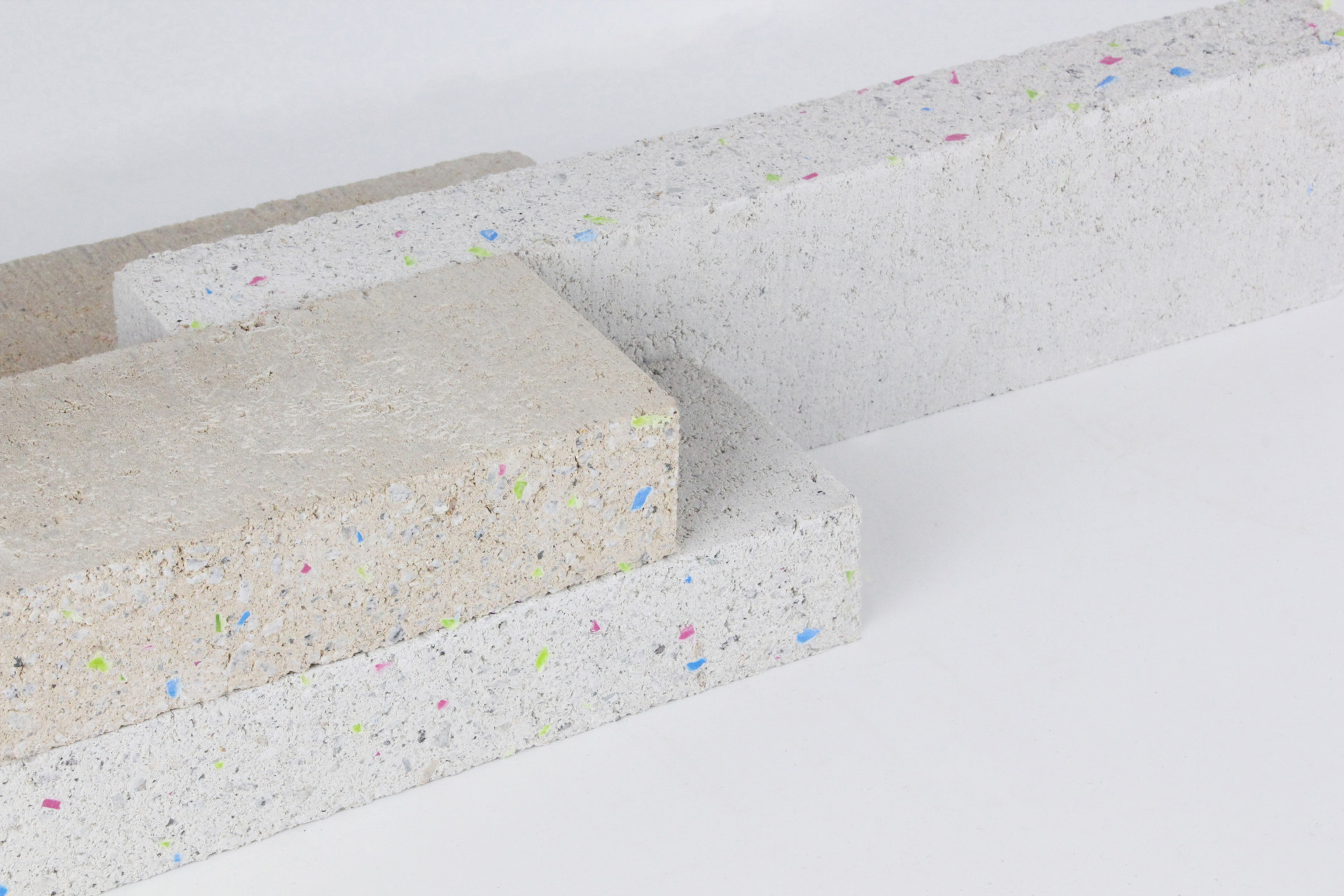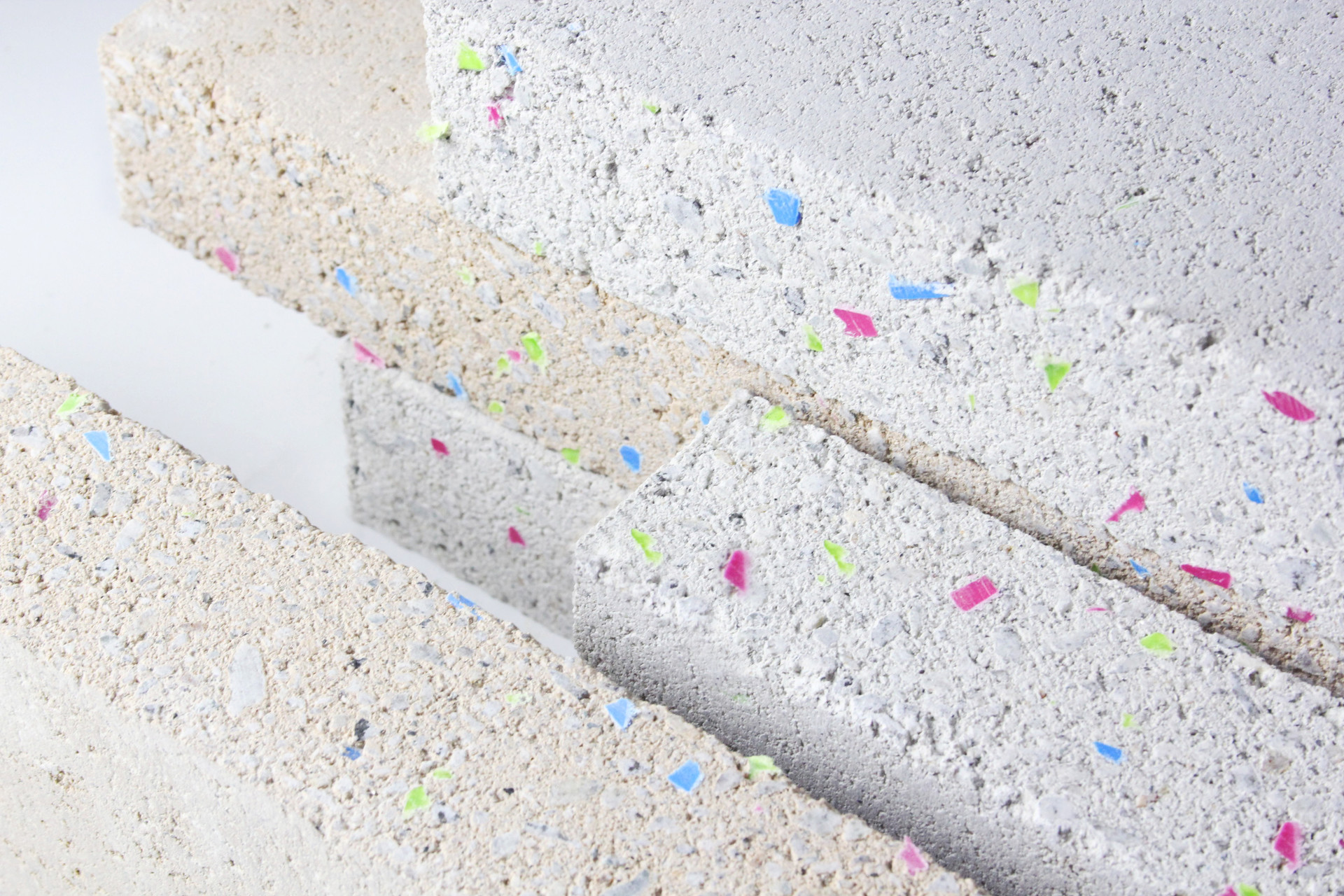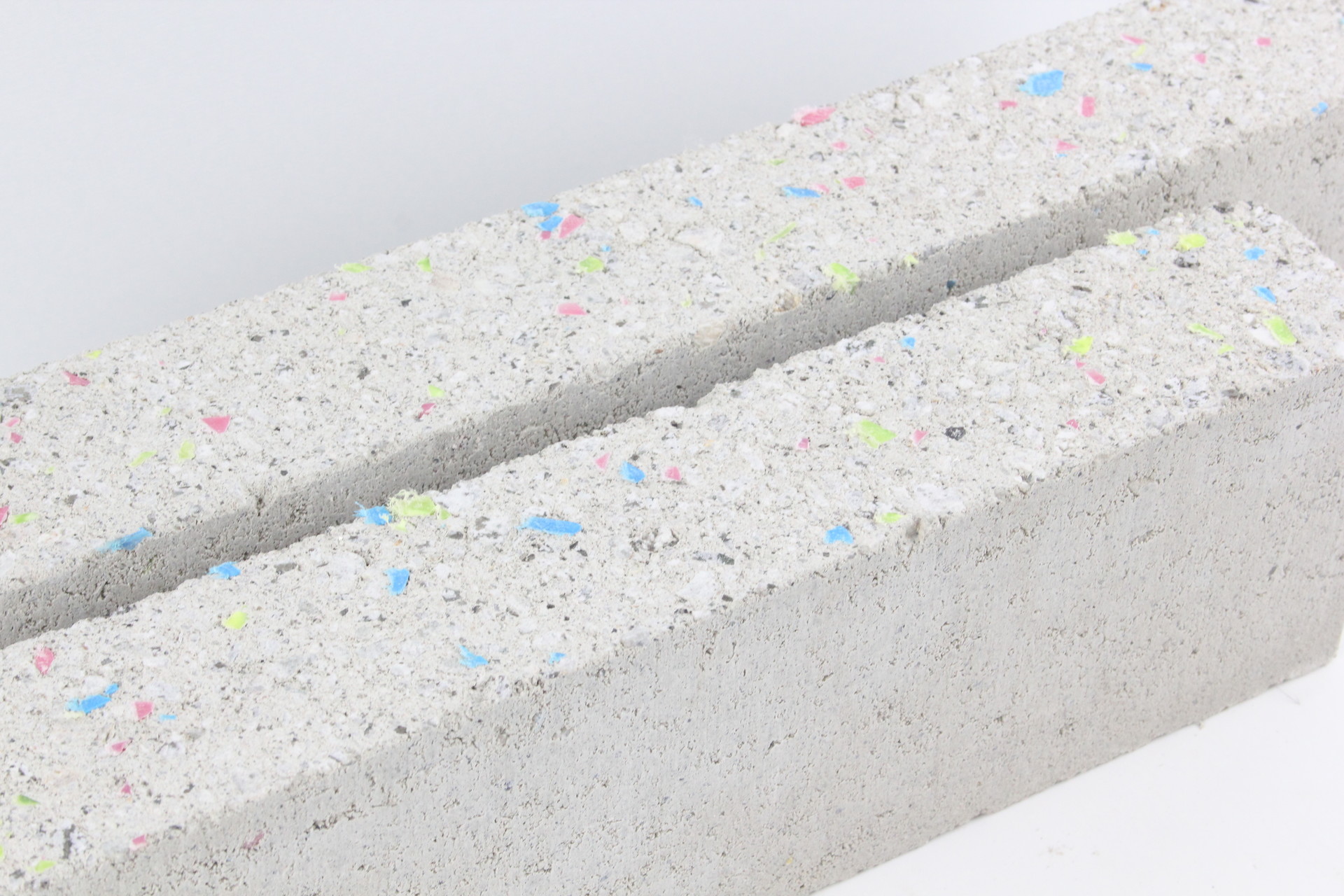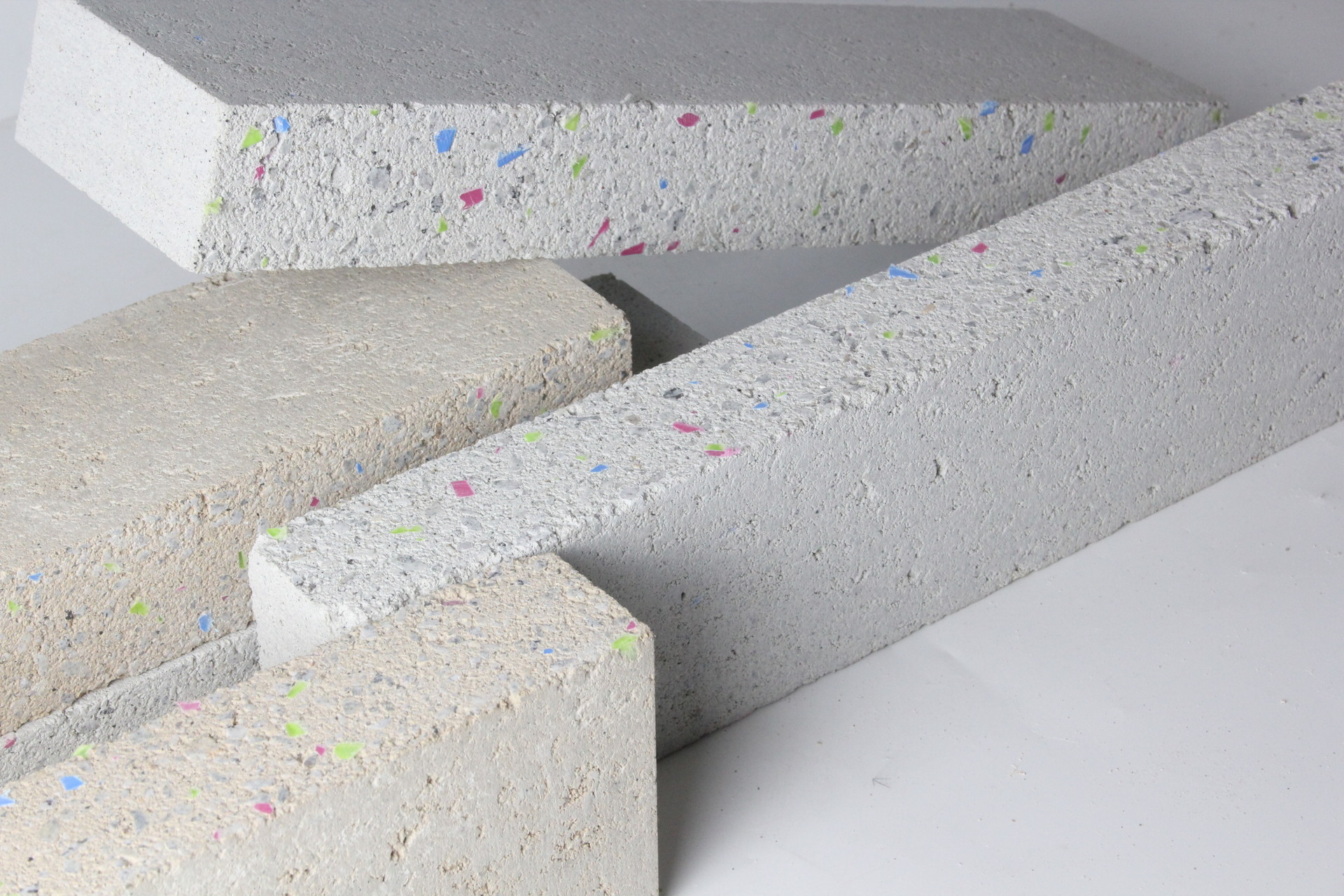 표면에 컬러 플레이크가 드러나며 기존 콘크리트 벽돌에서는 볼 수 없었던 감각적인 표면 질감을 구현합니다.