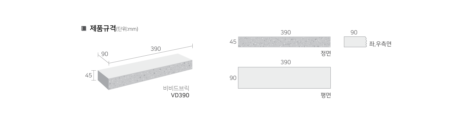 비비드 브릭 VD390 | 390×45×90 | 3.4 | 45 | 720(1P) | 35 | 6 |