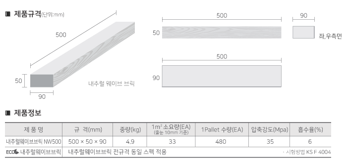 내추럴웨이브브릭 NW500 | 500×50×90 | 4.9 | 33 | 35 | 6 | 480 |