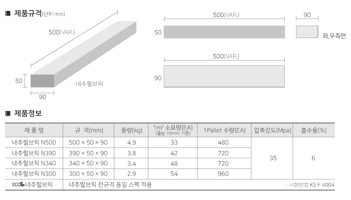 ECO 내추럴브릭 | 내추럴브릭 전규격 동일 스펙 적용 | |||||