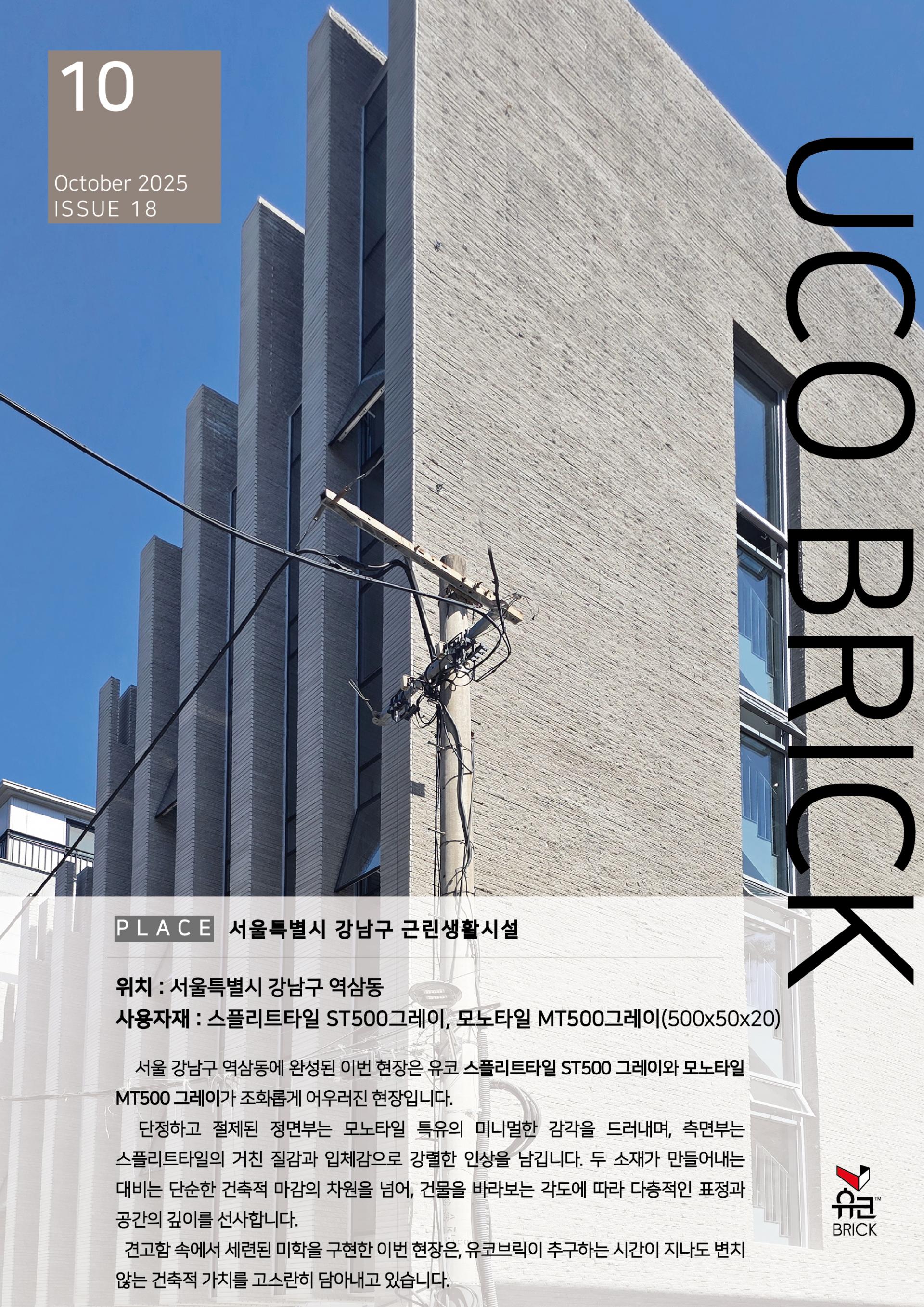 견고함 속에서 세련된 미학을 구현한 이번 현장은, 유코브릭이 추구하는 시간이 지나도 변치 않는 건축적 가치를 고스란히 담아내고 있습니다.