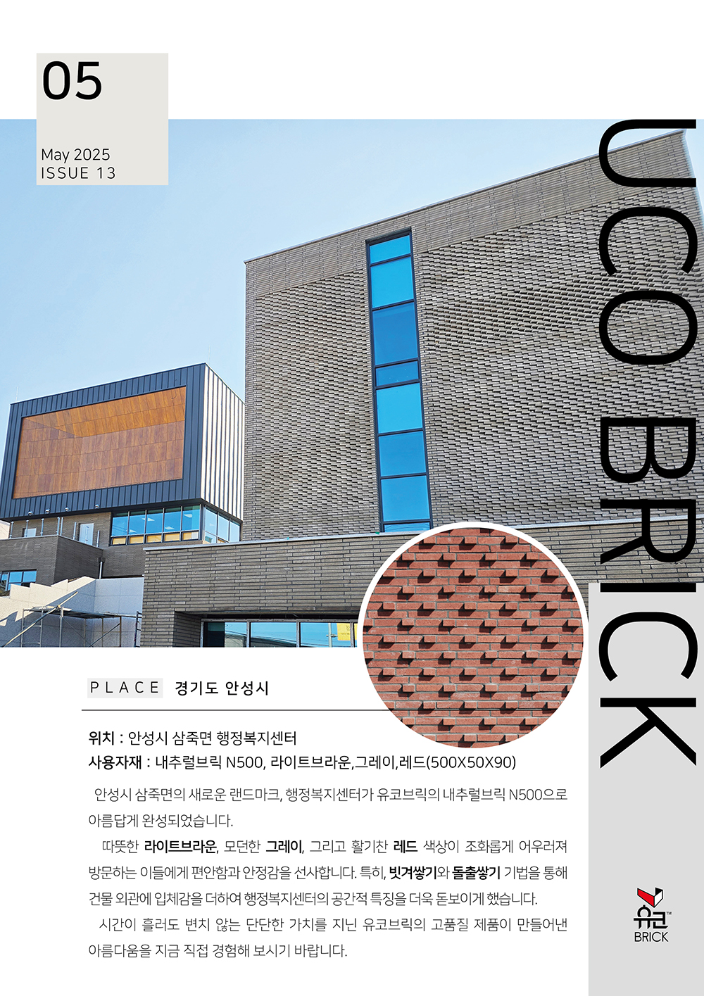 안성시 삼죽면의 새로운 랜드마크, 행정복지센터가 유코브릭의 내추럴브릭 N500으로 아름답게 완성되었습니다.