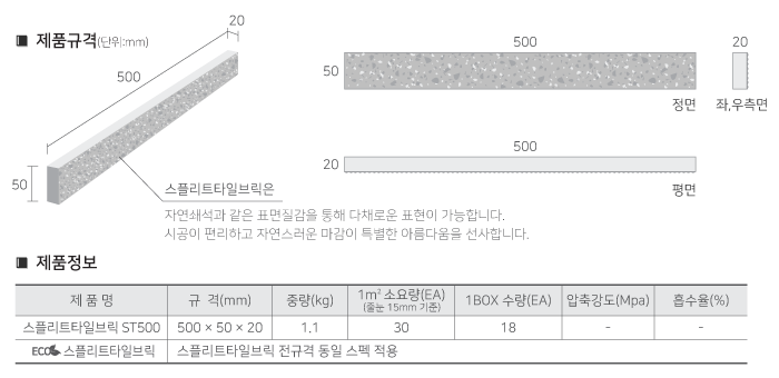 ECO 스플리트타일 | 스플리트 타일 전규격 동일 스펙 적용 | |||||