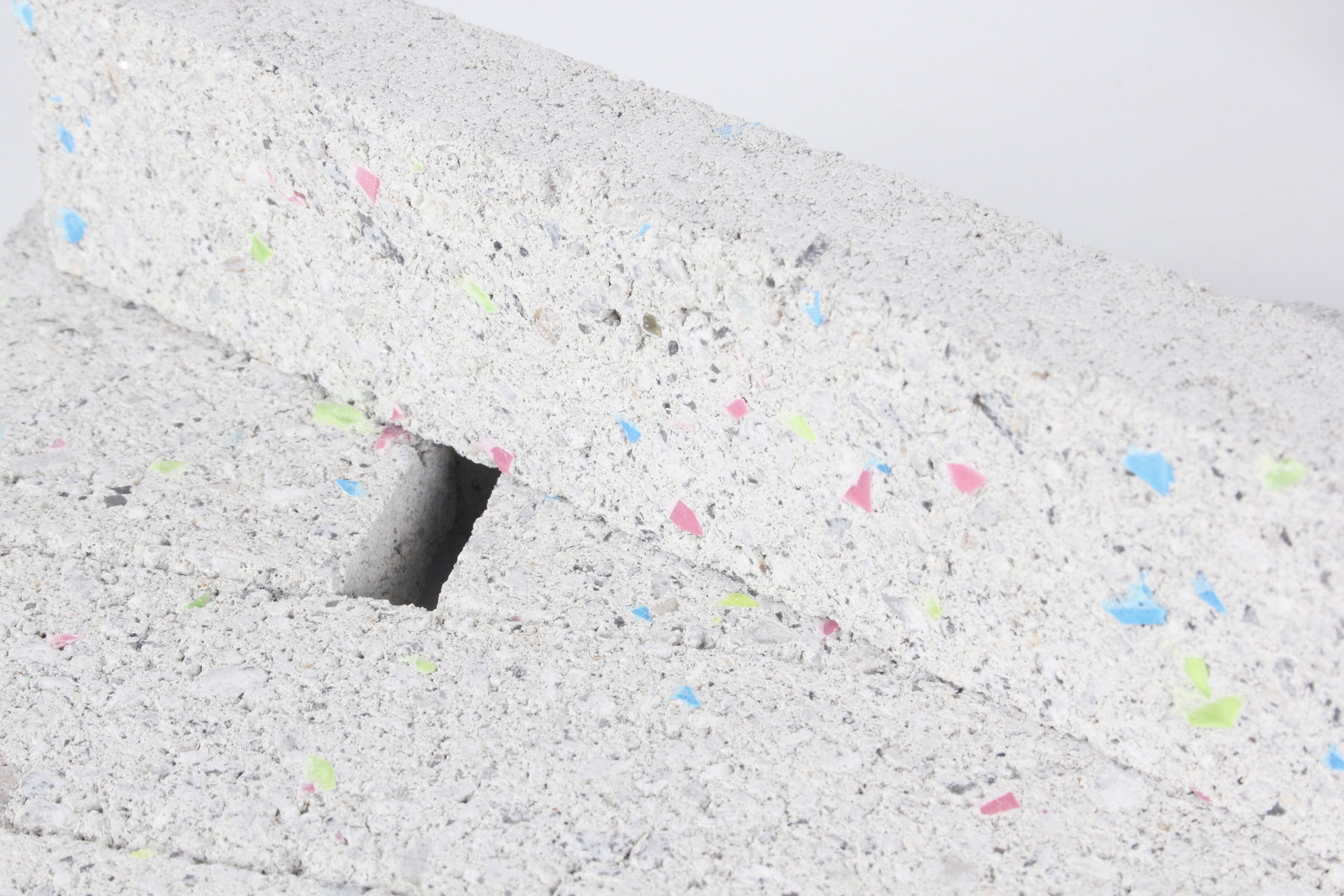 컬러 콘크리트 라인으로, 표면에 컬러 플레이크가 드러나며 기존 콘크리트 벽돌에서는 볼 수 없었던