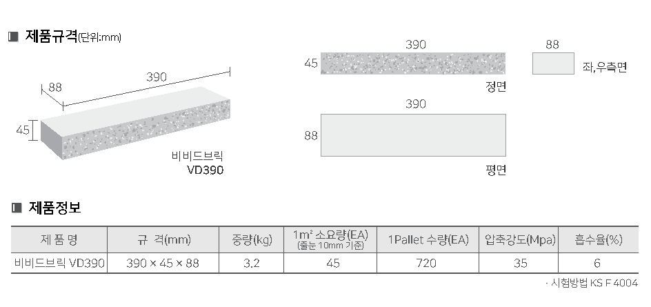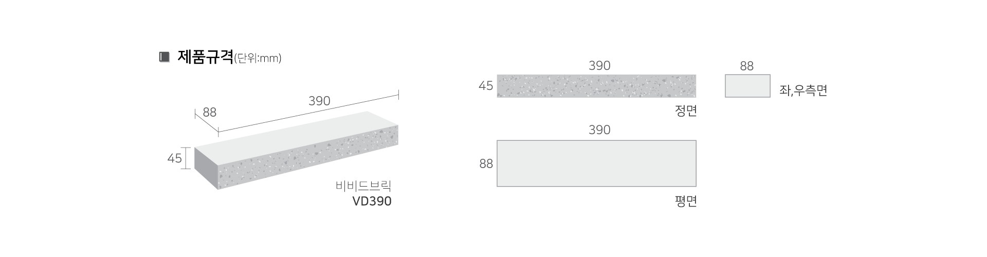 비비드 브릭 VD390 | 390×45×88 | 3.2 | 45 | 720(1P) | 35 | 6 |